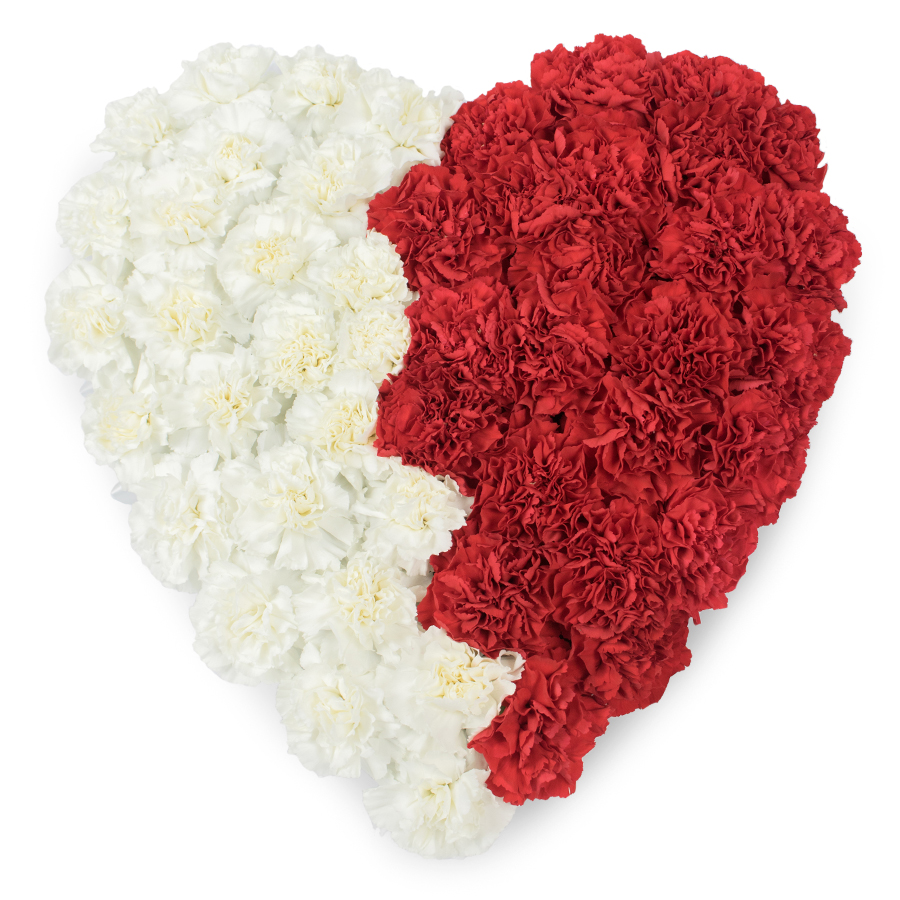 - Elegant Composition: The tasteful combination of white and red carnations offers a visually appealing and meaningful display.